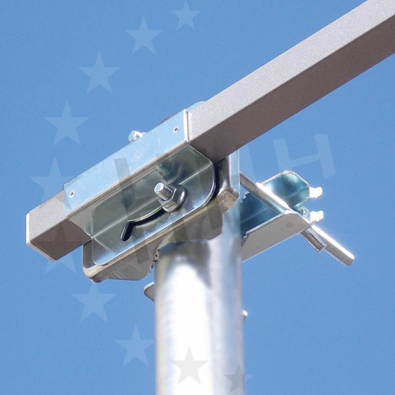 - Masthalterung: Stahl, verzinkt, vertikal schwenkbar für Mastdurchmesser: 20-56 mm