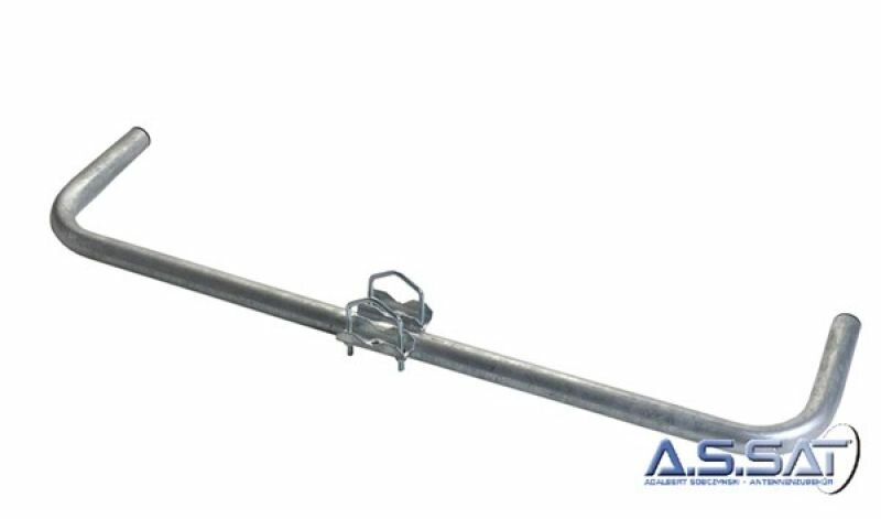 Zweifacher, feuerverzinkter Mastausleger für die Montage z.B. des Sat-Spiegels und der terrestrischen Antenne an einem bestehenden Mast.
