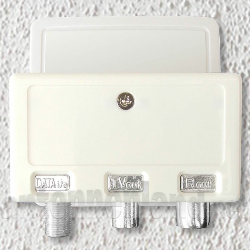 Tipp: Durch die schmale Bauform und die klappbaren Anschlüsse können sogar (abhängig vom Frequenzgang am TV-Anschluss) geeignete 3- und 4-Loch SAT-Dosen mit einem zusätzlichen Multimediaanschluss versehen werden.