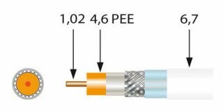 - Dielektrikum: physikalisch geschäumtes PE: ø 4,6 mm