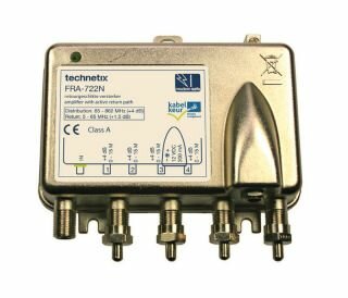 4 rückkanalfähige Ausgänge mit 4 dB Verstärkung, Steckernetzteil, Class A.
