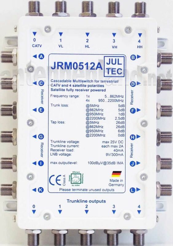 - Stammleitungsausgänge: 1 x CATV, 4 x SAT-ZF