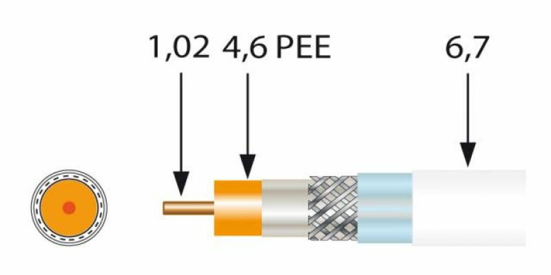 - Dielektrikum: physikalisch geschäumtes PE: ø 4,6 mm