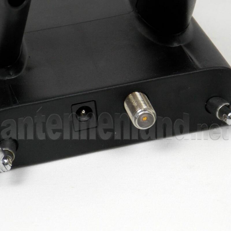 - Anschluss: F-Buchse im Sockel des Standfußes; ein Anschlusskabel FM auf IECM (ca. 1.40 m) mit Antennenstecker für den direkten Anschluss eines TV-Gerätes ist im Lieferumfang enthalten.