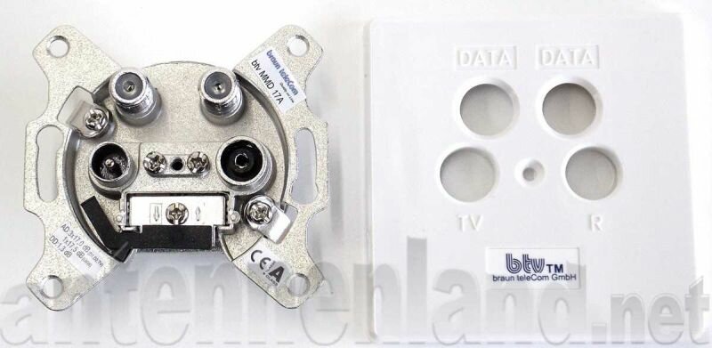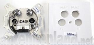 - Multimedia-Durchgangsdose 1 GHz mit 2 separaten DATA-Anschlüssen zum Direktanschluss einer interaktiven Set-Top-Box bzw. PVR und eines Kabelmodems